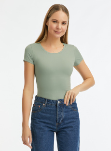 Футболки без надписей и принтов зеленого цвета для женщин